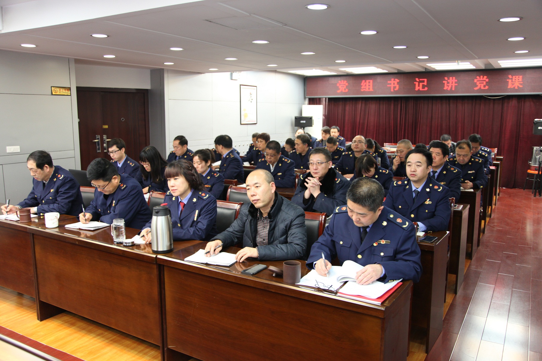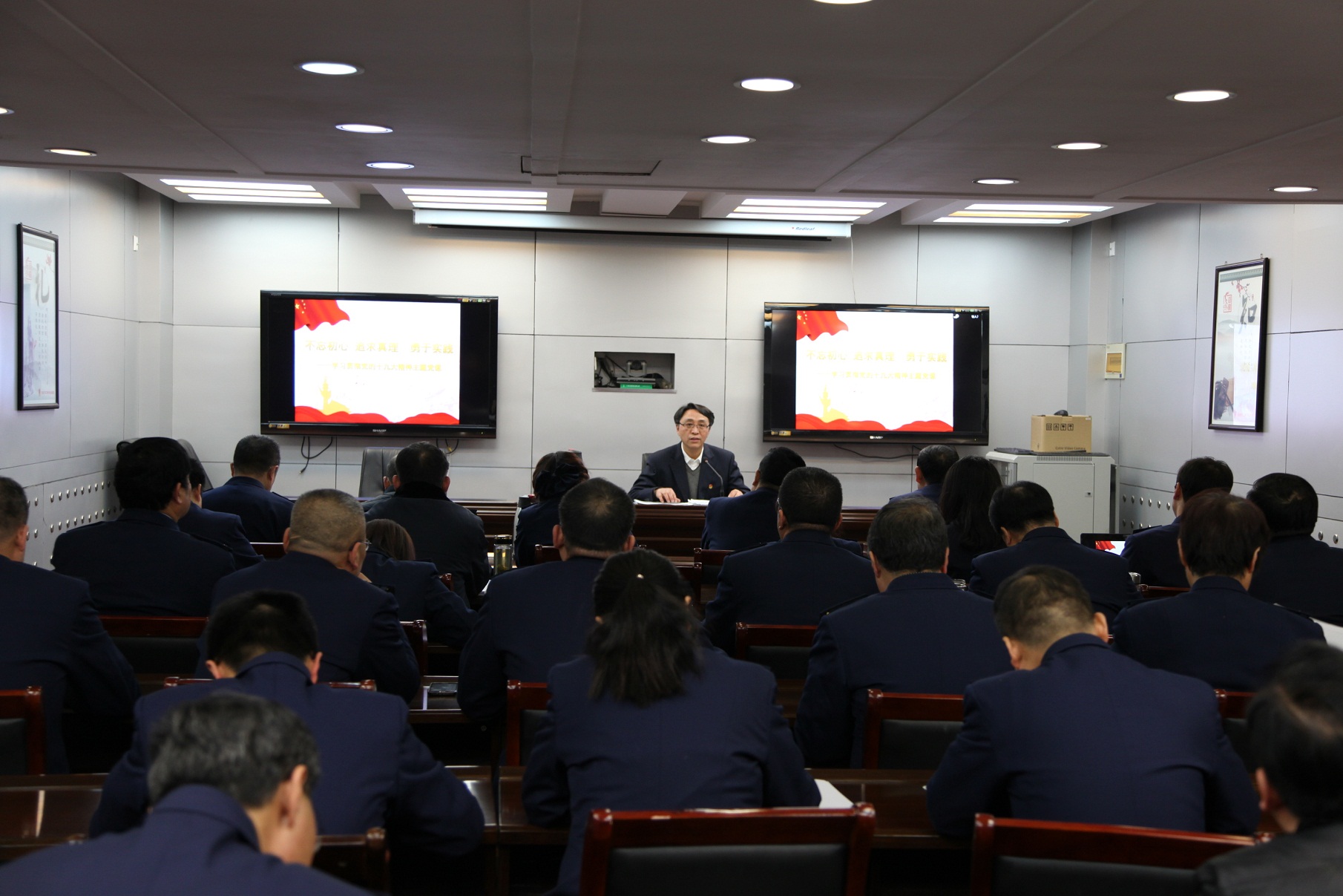 张俊堂局长以《不忘初心 追求真理 勇于实践》为题,结合自身学习思考,紧扣党的十九大报告内容,从五个方面全面深入解读了五年来的历史性成就、我党不变的初心、习近平新时代中国特色社会主义思想、打铁必须自身硬、以及结合工商改革发展服务,提出认真落实党的十九大精神要求。整个党课辅导内容丰富,重点突出,论述深刻,令人深受启迪,深受教育,对广大党员干部完整、准确、科学、系统地学习领会党的十九大精神,用党的十九大精神指导工商工作实践起到重要的指导作用。